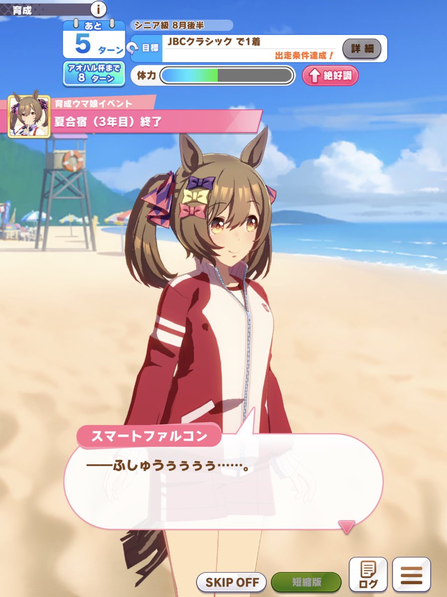 ファル子が夏合宿で海をまっぷたつに割るコミュめっちゃ面白いから見てほしいウマ娘みんなちゃんとトレーニングしてるから偉い。トウカイテイオーとシンボリルドルフはデッドリフト200kgできるし、ミホノブルボンはスクワット120kg 10×3できる。これができれば君もウマ娘! pic.twitter.com/F6QLxWnt1r
