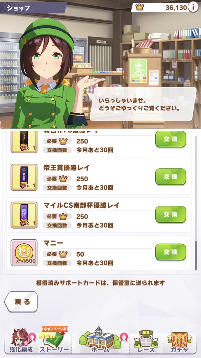 #ウマ娘 pic.twitter.com/15U2YvwEunかしわ記念・川崎記念・マイルCS南部杯の優勝レイ交換所で交換できるのね