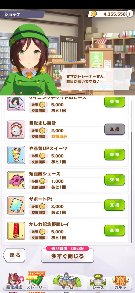 これ、コパノリッキーをショップ交換なしに覚醒レベル上げきるには今から50回超、かしわ記念を優勝してレイを持ち帰る必要があるのはマジっすか?_(:3」z)_ショップにダートの優勝レイ増えてますね(∩´∀`)∩