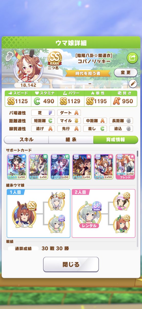 芝因子が欲しいなぁ。リッキー育成なかなかにしんどいわね。適性はいいし逃げなら安定して勝ってくれる頼もしさもあるんだけど、芝適性上げないと出られるレースが絞られすぎて今までと全然違うローテになってまうし、序中盤のダートレースの少なさも相まってコイン全然稼げないのもつらいところ pic.twitter.com/1MdEyhbwh9リッキー芝上げるの辛いからダートのみのローテ考えてるけど難しいなぁ
