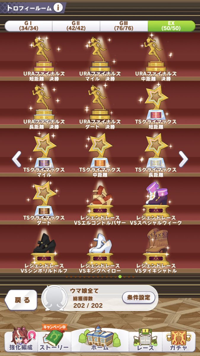 今まで全冠取ってたやつで追加分のトロフィー回収してる
