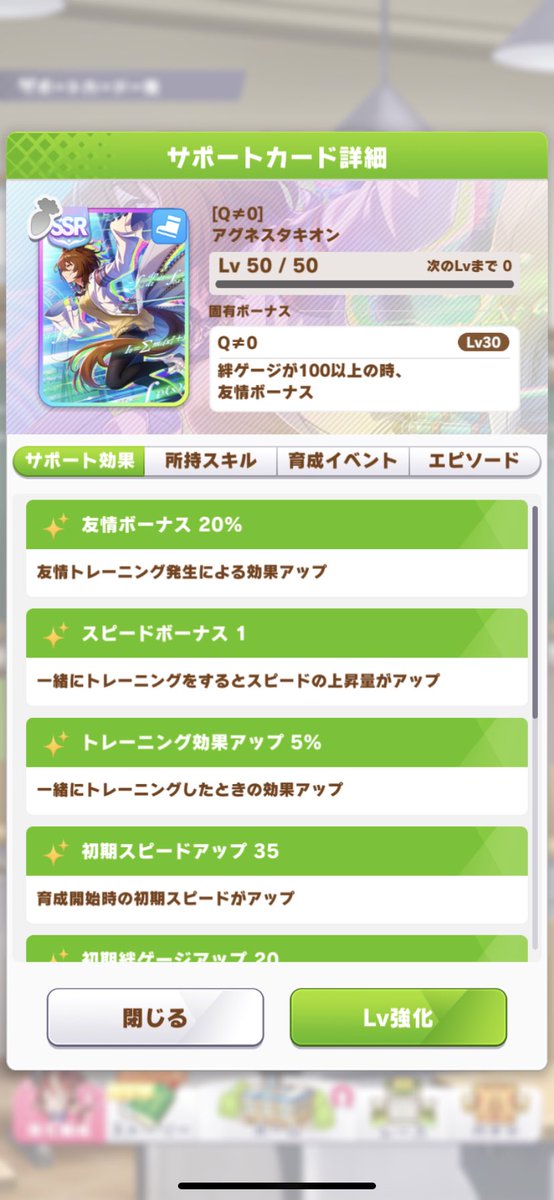 タキオンssrのサポカイベ一回目のやつ下選んだらスピスタ賢さ+5