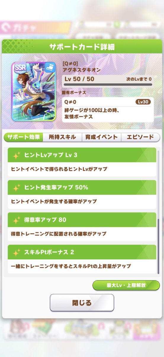 そこでスキルPtボーナス2のタキオンを使うと…
