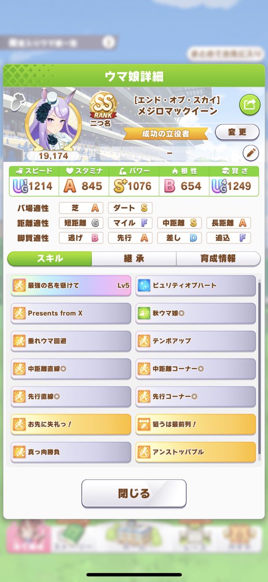 因子次第だけどスピ因子とか盛るならスタミナいるわね145: 名無しのトレーナー 22/08/31(水) 21:03:55 ID:PO.zt.L6スピ3でも1500ぐらいスピ出せるし3枚でええぞ160: 名無しのトレーナー 22/08/31(水) 21:05:15 ID:uo.gw.L48スピが低くても他のバランスが良ければ勝てるってゲームじゃないからスピカンスト前提で最高速出せるようにスタ盛って今回は賢さは削ることになりそうやな190: 名無しのトレーナー 22/08/31(水) 21:07:58 ID:J6.7x.L14クリークでスタミナ伸ばしながらスピード1600(実質2000)とパワー賢さ1200なんてできるんかねぇ256: 名無しのトレーナー 22/08/31(水) 21:12:31 ID:bi.oc.L23グラライ、中盤薄くて普通に負けまくるとかありそうやな