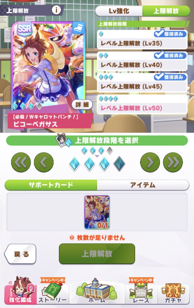 2枚抜きからの1枚いたので無事完凸しました性能知らないけどタキオン一枚も見てないんですがね(白目