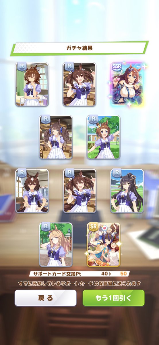 連続イベント次第で光るのがちょっと早いの除けば配布とガチャって感じでトレ性能にかなりデカい差があるからなビワとクリーク