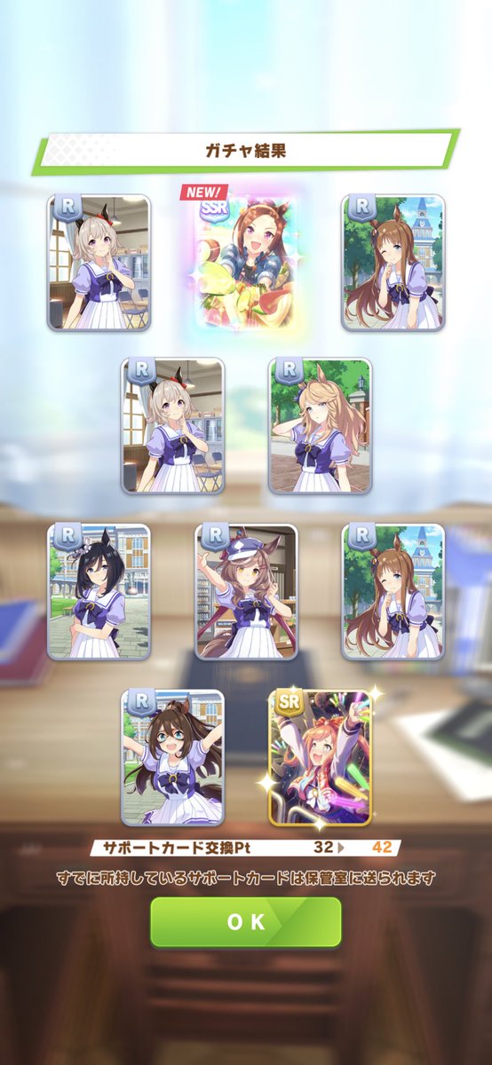 今日のウマ娘無料10連SRが7つもでた。明日でウマ娘の無料10連最終日かな?