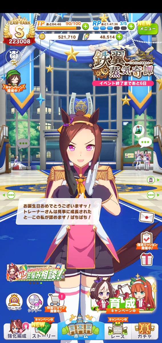 誕生日にホーム画面のウマ娘ちゃんが祝福してくれました