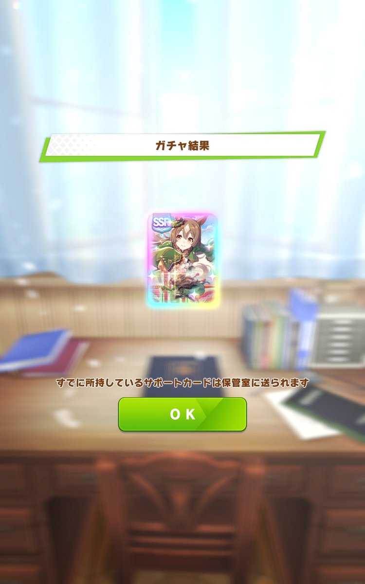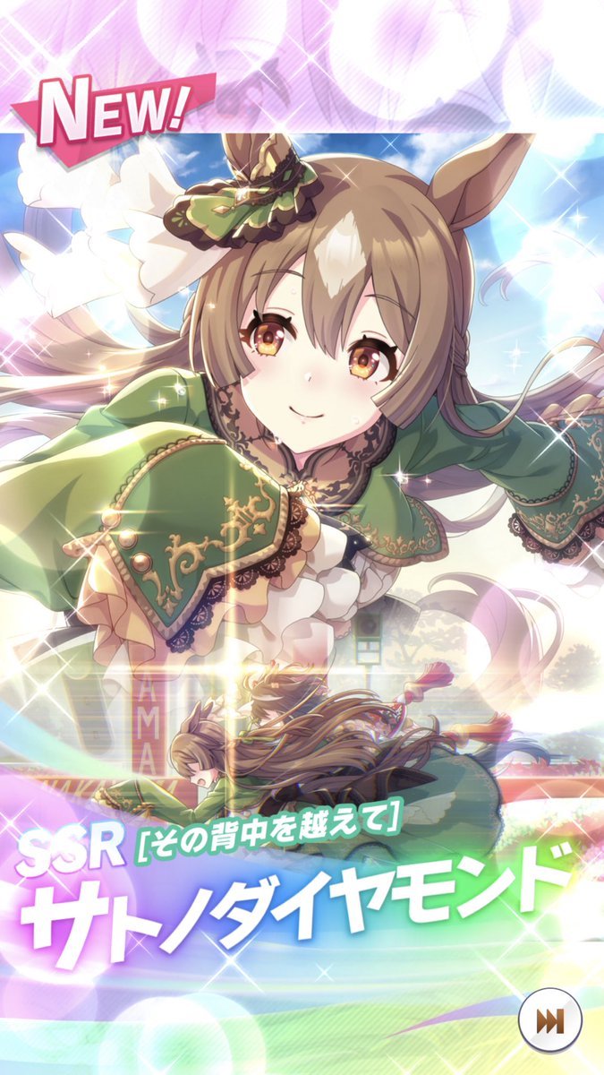 1600万記念SSR確定ガチャ、ありがたく貰えるもんはもろとくわなんか被れ!ぬうん、お初!最近評価上がってきたサトノダイヤモンド!しかしながら無凸で鋼の意思では如何ともし難いのであって余程の奇跡がない限り観賞用で終わりのであった。 pic.twitter.com/eTwRRCYlfc