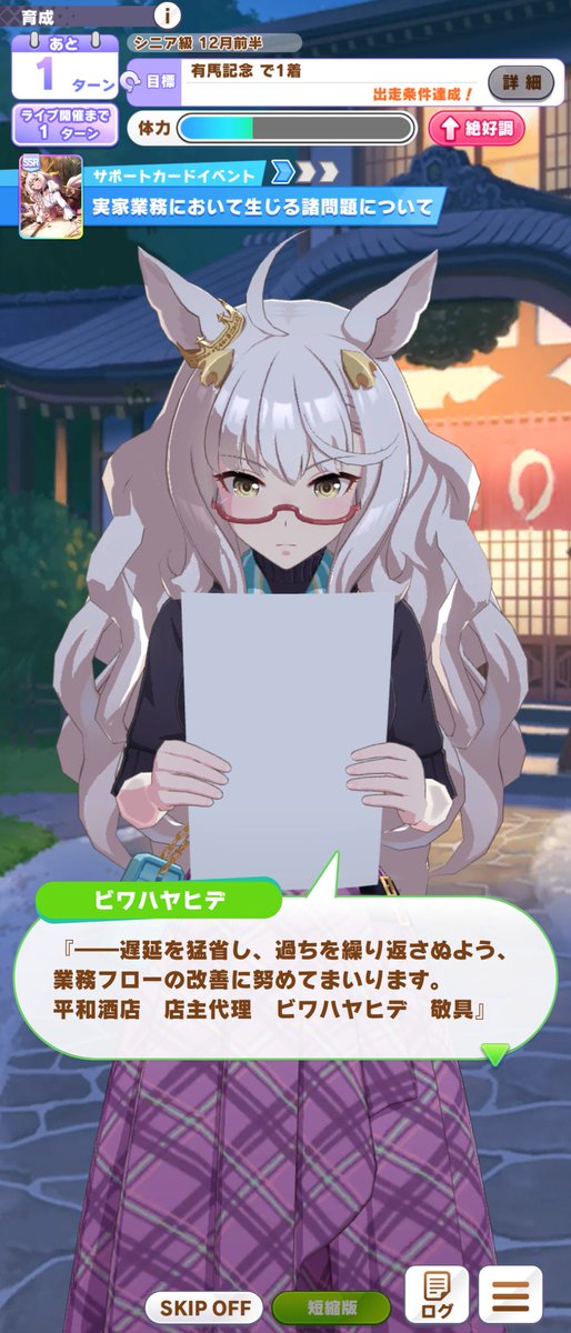 先日の配布SSRハヤヒデの野良イベに遭遇したのですが…恥ずかしながらハヤヒデとブライアンの実家が酒屋だという事を今さら知りました(*´ω`*) 店番と配達をする二人が何だかカワイイ(ノ∀`) #ウマ娘 #ビワハヤヒデ #ナリタブライアン pic.twitter.com/lr1ID2sPkfビワハヤヒデ育成にビワハヤヒデの配布スタミナサポカ使えないのめっっっちゃしんどい鉄翼蒸気奇譚、無事にクリアしたぜ。今回のは凸サポカが配布含めて既に多めにあったから進めやすかったね。