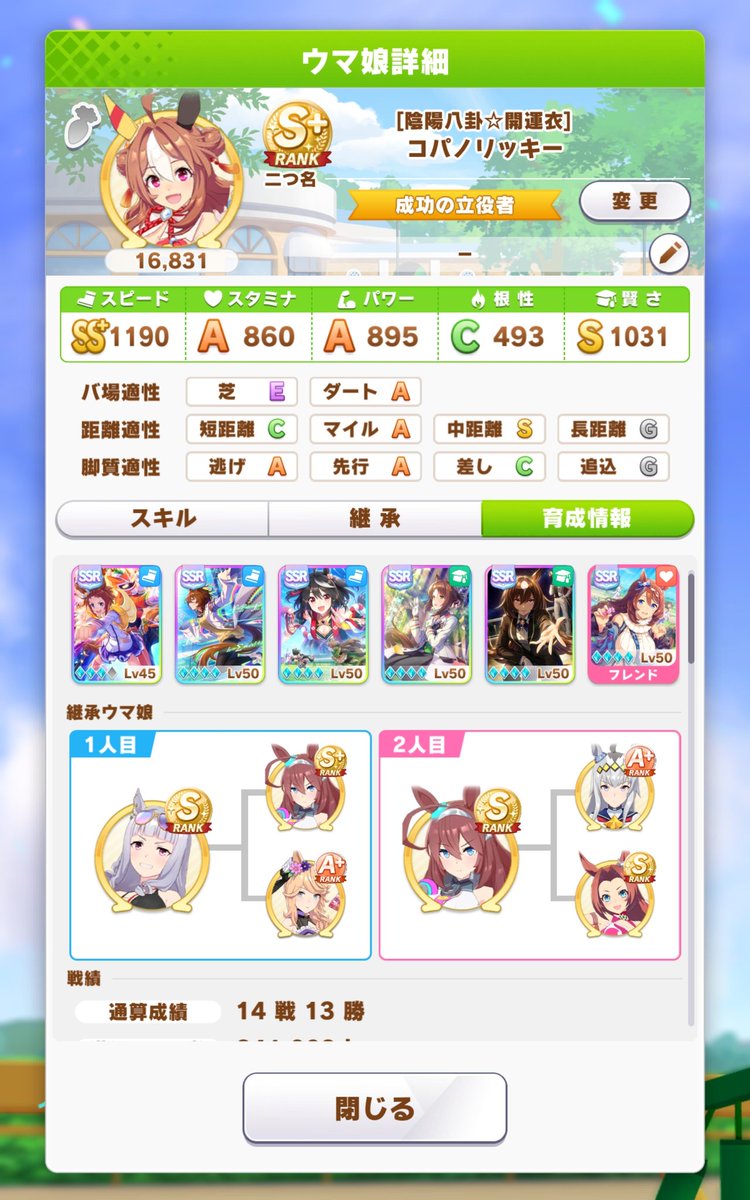 1/2のサポカが完走しなかった。 pic.twitter.com/0i0H7m2BBIライトハロー入るor入らないの答えって、R育成編成まで敷居下げるとプレイヤーの編成例にほぼ100%入ってるからカード揃ってる人のほうがハロー抜きスピ3の選択肢取れやすそうだなって感じがある