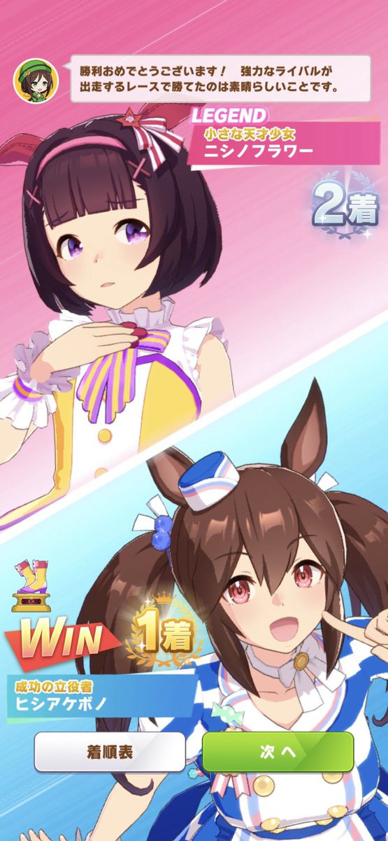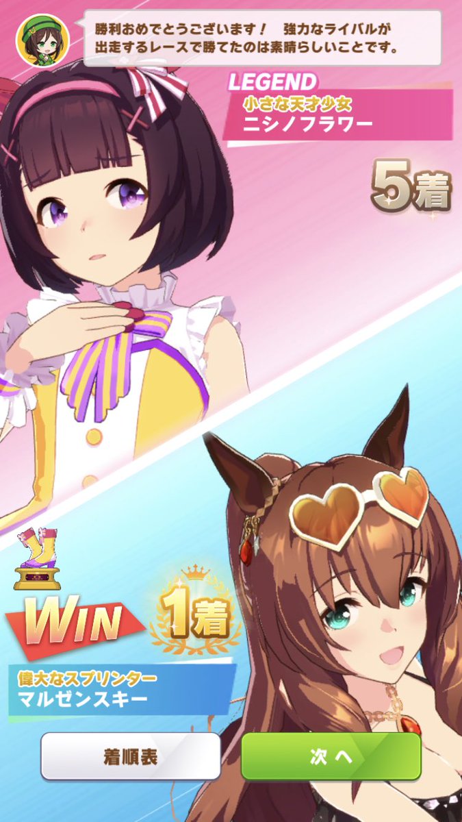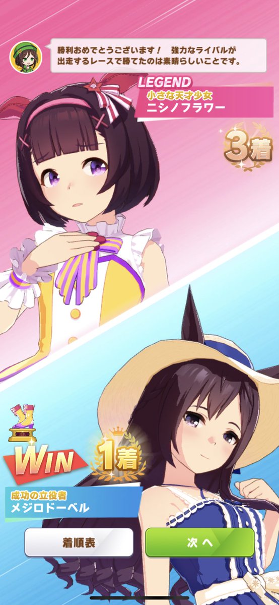 私もニシノちゃんの靴をゲット!レジェンドレースもそろそろ新しい難易度が追加されたりするだろうか?個人的に期待したいですね~
