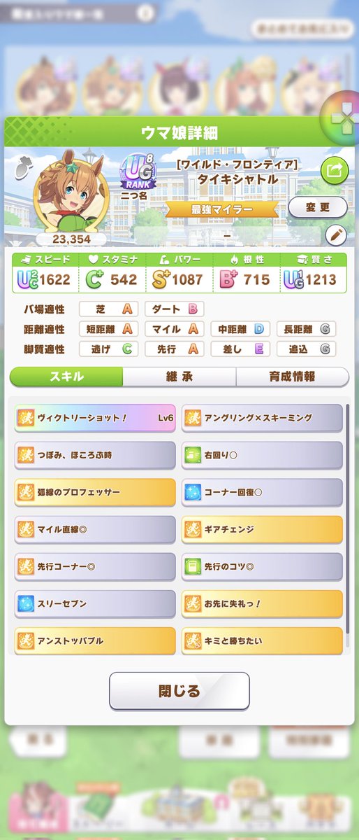 タイキはこれでいいけど、ニシノは賢さ足りないから作り直しかなぁ