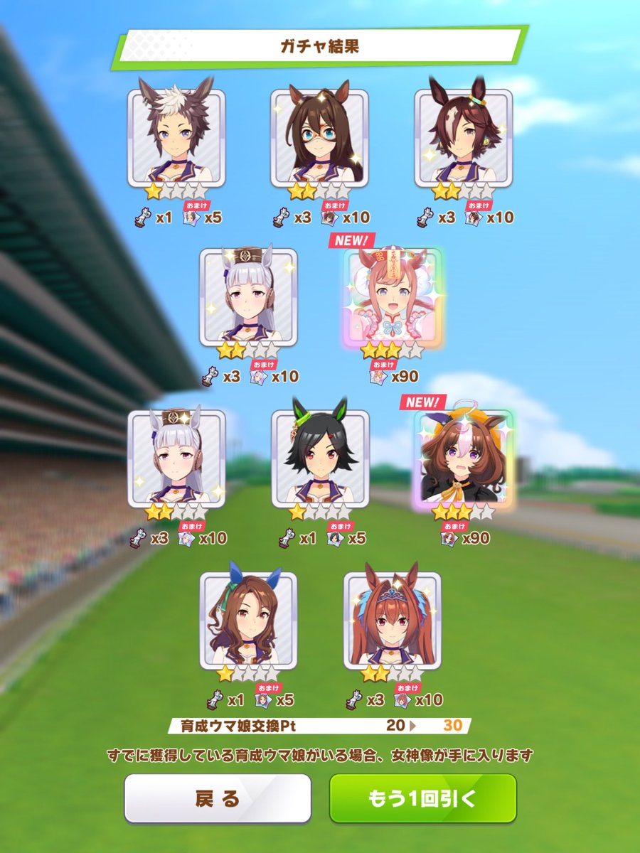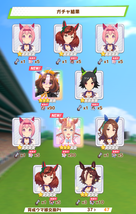 ウマ娘たちの数も大分増えてきたのにピックアップされていないこの二人を同時に引くのは凄いと思う!