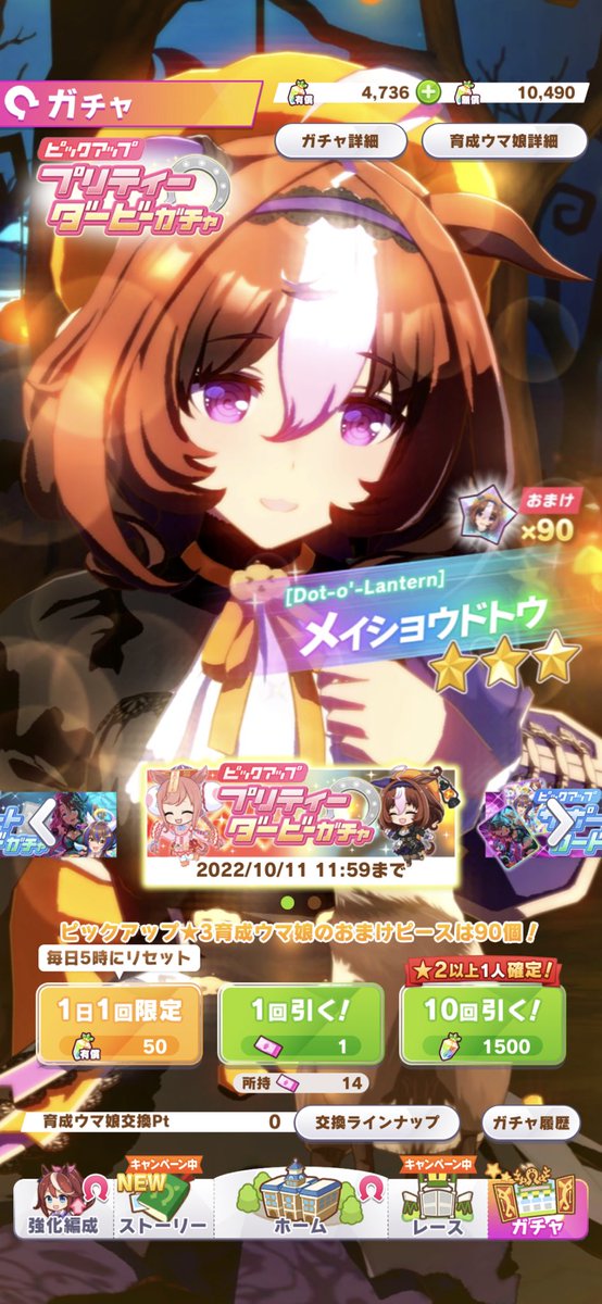 30連で2枚(+サトノ)引いたのでしばらく何も来ない気がする😂デジたんもドトウさんも初めましてだし、どっちもハロウィン衣装が可愛すぎる…