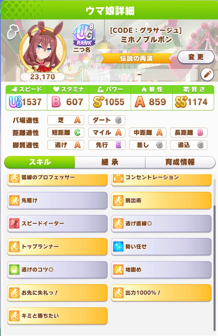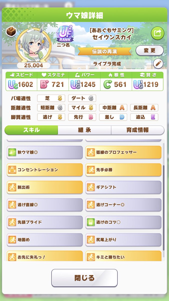 これに距離Sつけて根性1000超えにするのが当面の目標になりそう(´・ω・`) pic.twitter.com/bxVmE6WYzL