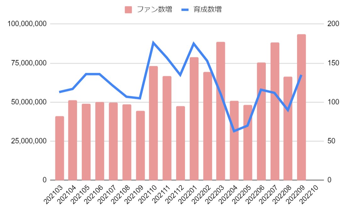 サービス開始から1年くらいは月3000万とかガンガン育成してたけど、クラマあたりで上振れ下振れの激しさに萎えてチャンミ以外ほぼ育成しなくなっちまったよ