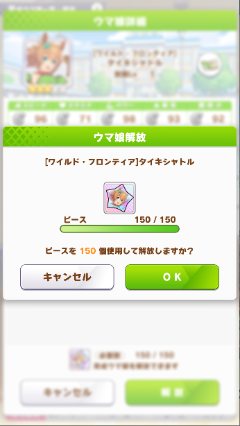 ピース150でキャラ解放地味にありがたい名無しのトレーナー今見たらブルボンが52個でカレンチャンが73個で解放できるな