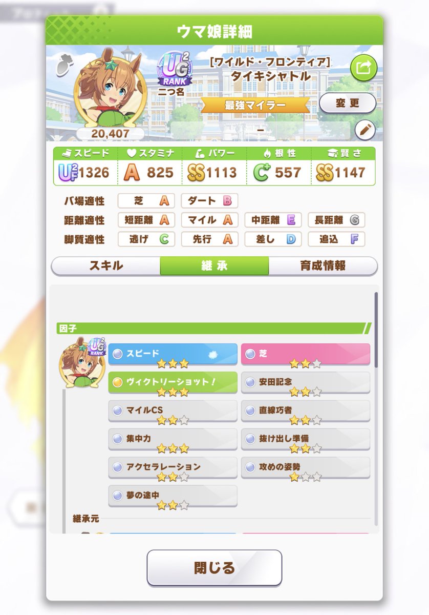 ウマ娘の育成一周がイベント2倍と因子再抽選でTP90使ってほぼ空になるのきつい。なんか、因子でる確率が前より上がっている気がするんだよな再抽選で試行回数増えたからかな?