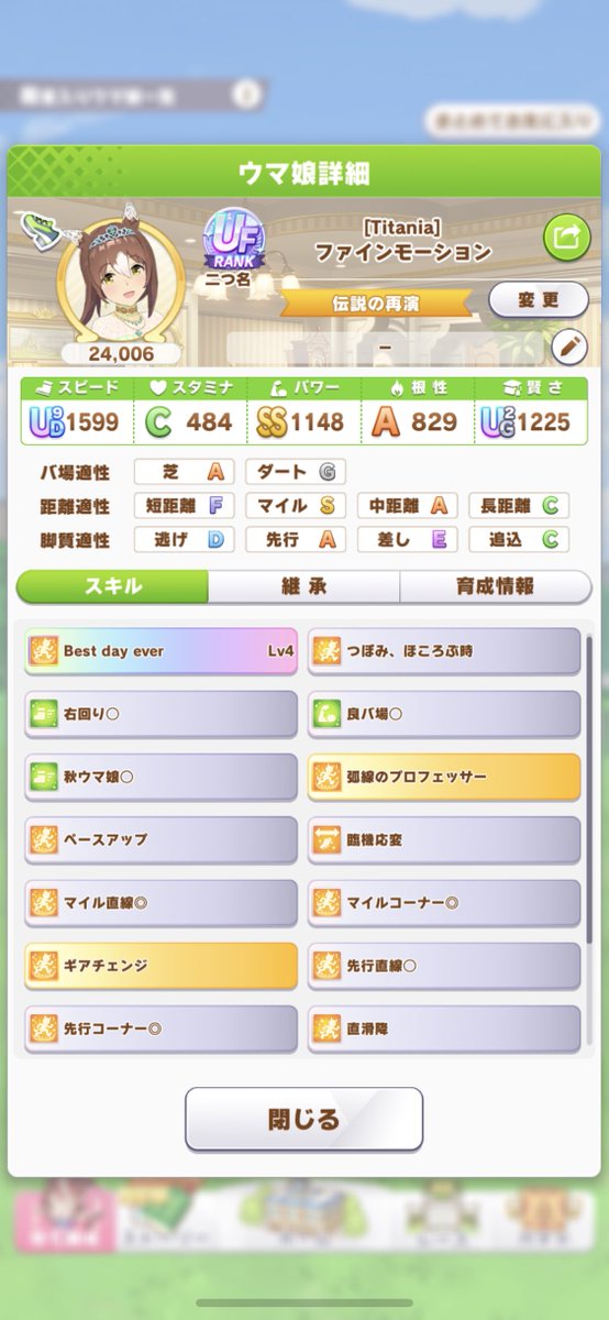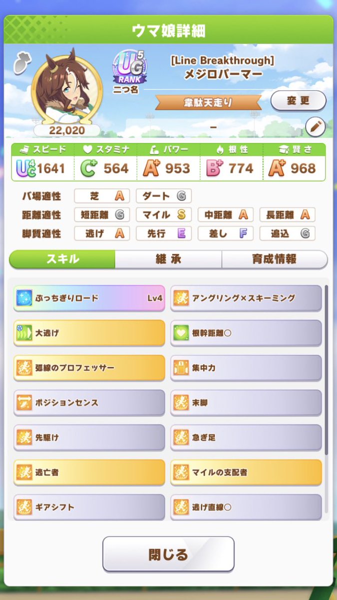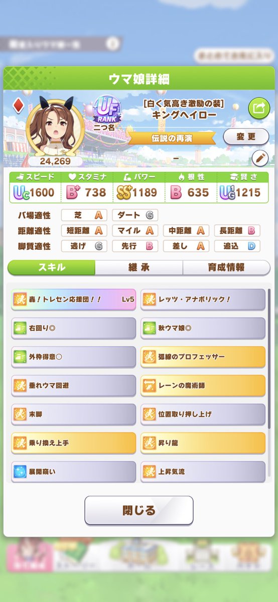 頑張ればチャンミでも戦える程度のスペックがあるのはえらい780: 名無しのトレーナー 2022/10/08(土) 12:39:58.89 ID:dyXiu/wH0ニシノタイキオグリでいくわ。思ったより先行勢が勝たん822: 名無しのトレーナー 2022/10/08(土) 12:46:31.49 ID:dyXiu/wH0ナリブ出したいのに天皇賞春1着が鬼門すぎる