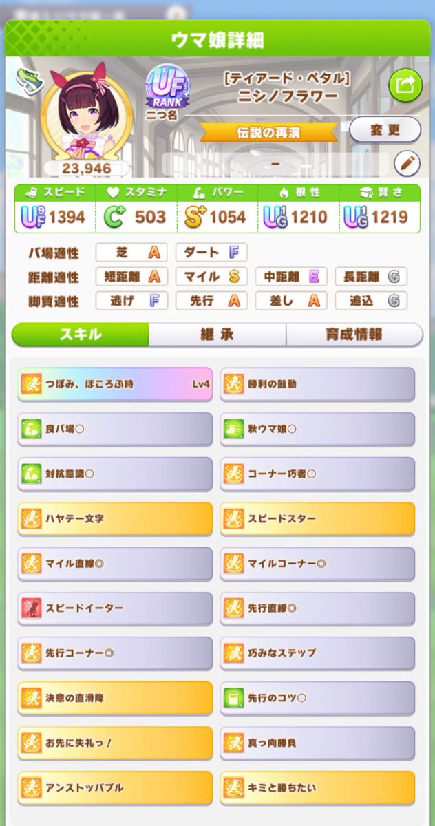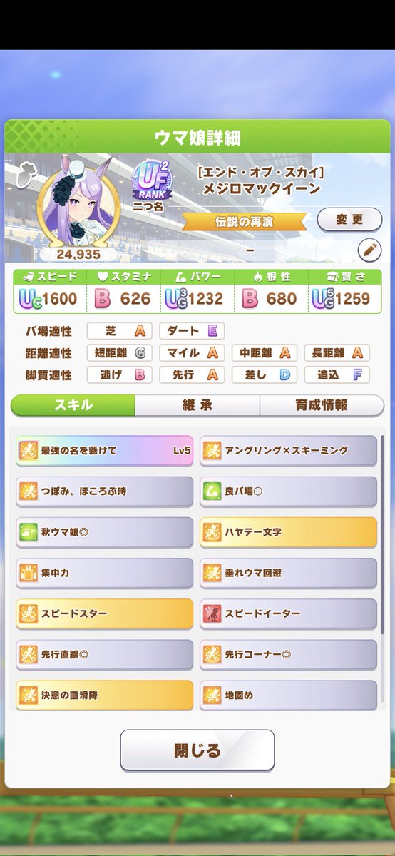 全員育成し直しや…今日のライブラ杯白マック育成適正と根性がな〜 pic.twitter.com/zyqDjx71fq