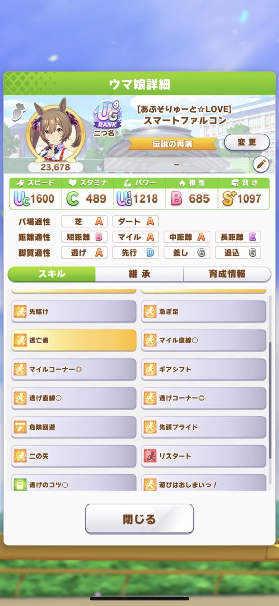 再育成…する?661: 名無しのトレーナー 22/10/11(火) 16:26:42 ID:g0.pp.L29ステが完璧やとSが付かないか未完走になる現象に名前付けろ662: 名無しのトレーナー 22/10/11(火) 16:26:51 ID:3p.um.L30もっとエアグルーヴが遊んで欲しいって言うてるんや669: 名無しのトレーナー 22/10/11(火) 16:27:54 ID:xO.pp.L1ちなみにそういうワイも