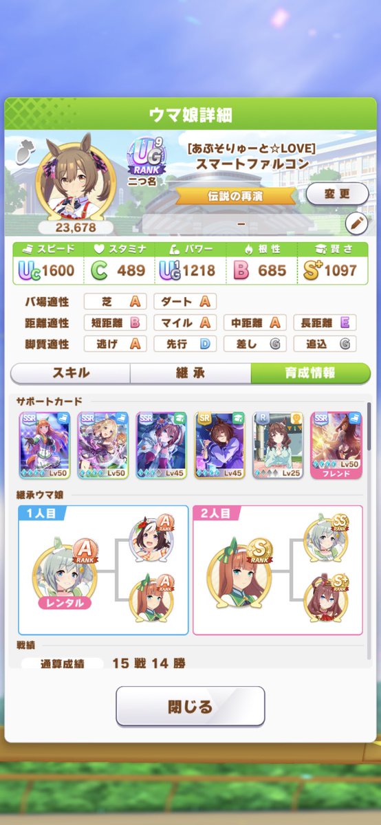 672: 名無しのトレーナー 22/10/11(火) 16:28:08 ID:6T.i9.L49もう233回言ってるけど編成したサポカが完走しないって意味わからんわ