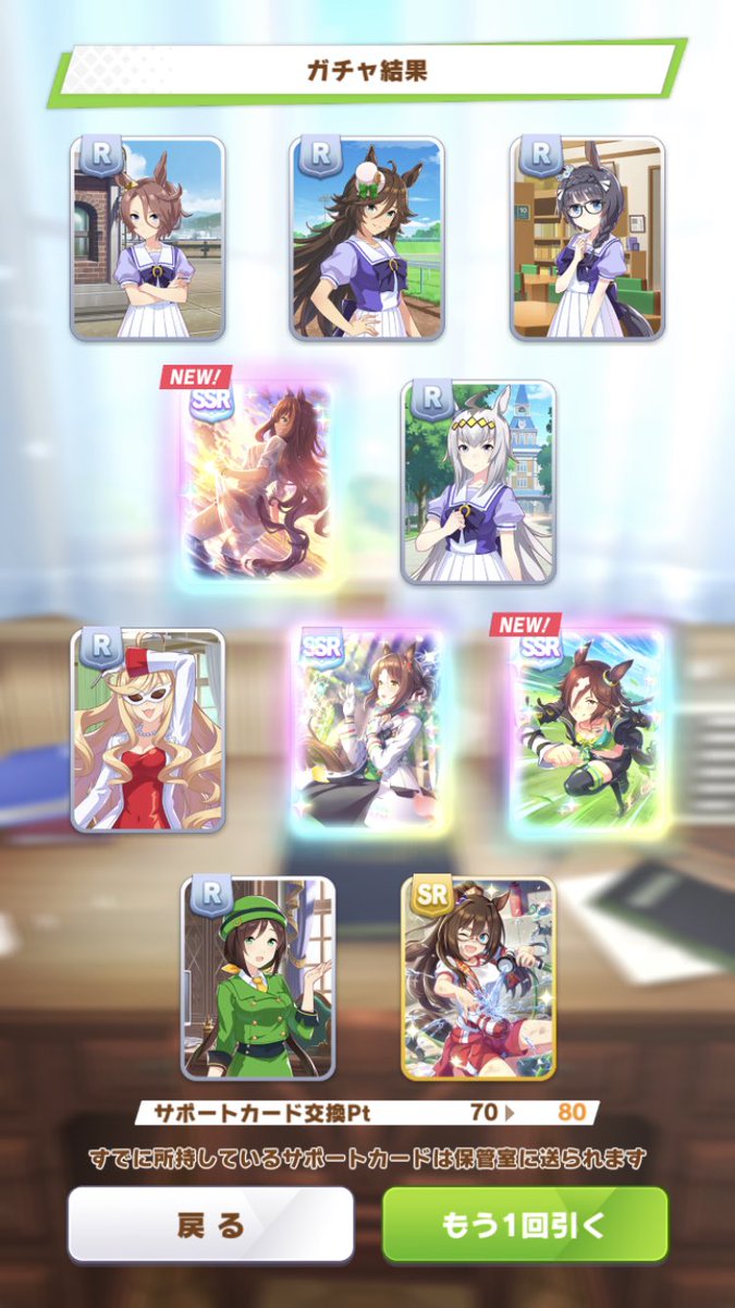 キタちゃんのサポカとかは引いておけば良かったランキングかなり高そう。あとクリークさんとか。