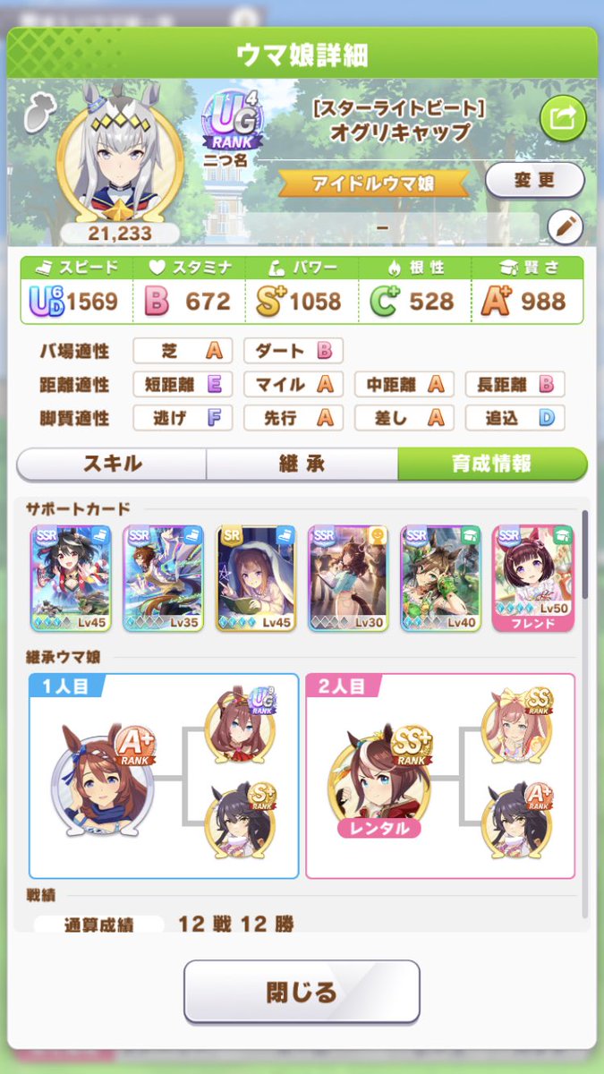 オグリこれで金回復1と白回復1、クリーク継承して京都レース場つけて、掛かり無かったらギリ足りてるっぽい(ほぺさんのスタミナチェック機能) pic.twitter.com/AdPIu1v8iT