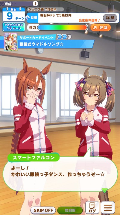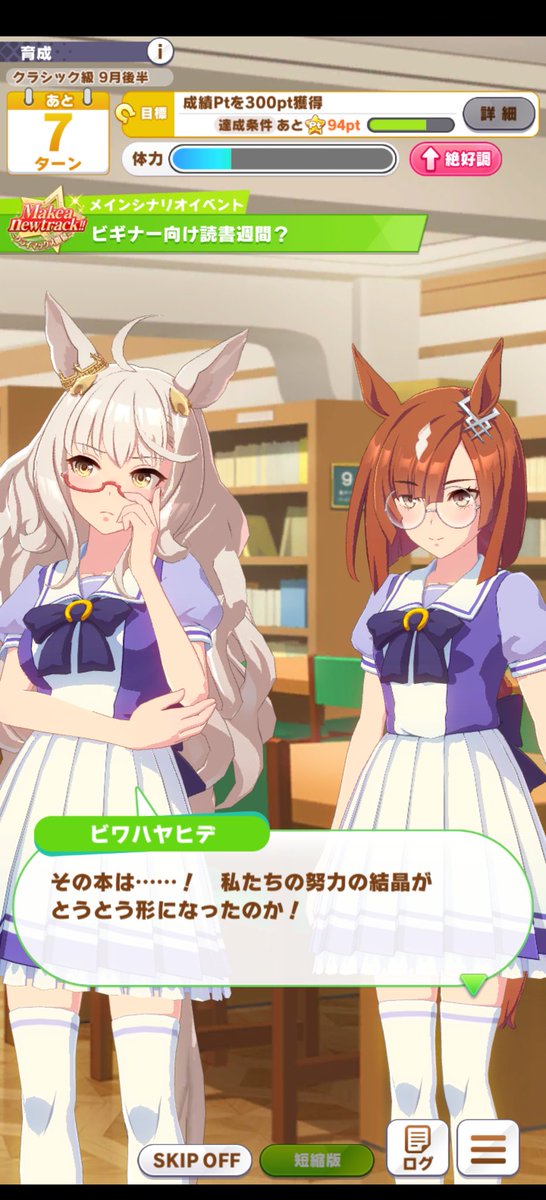 TLの一部の人に届けという目的で記しておきますが、新規サポカのSSRイクノ、ファル子が眼鏡をかけてイクノ・ハヤヒデ・ロブロイと絡むイベントがありますね pic.twitter.com/Y061PIw8Niイクノの細めの縁取りした丸眼鏡、ロブロイの太目の縁取り眼鏡、ハヤヒデの下縁取りの赤眼鏡でこだわり見えるのは好きよ