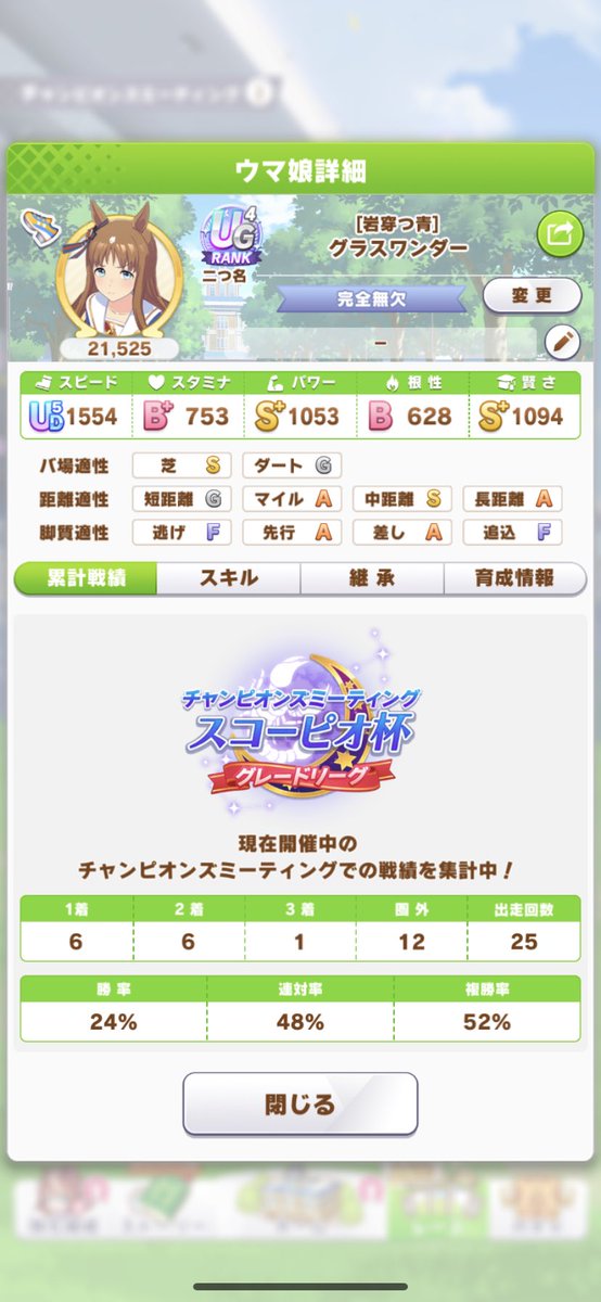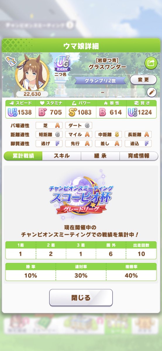 初期版UG4はノンスト差切態勢、再育成版UG7は垂れウマキミと勝ちたいと加速スキル変えてみた。