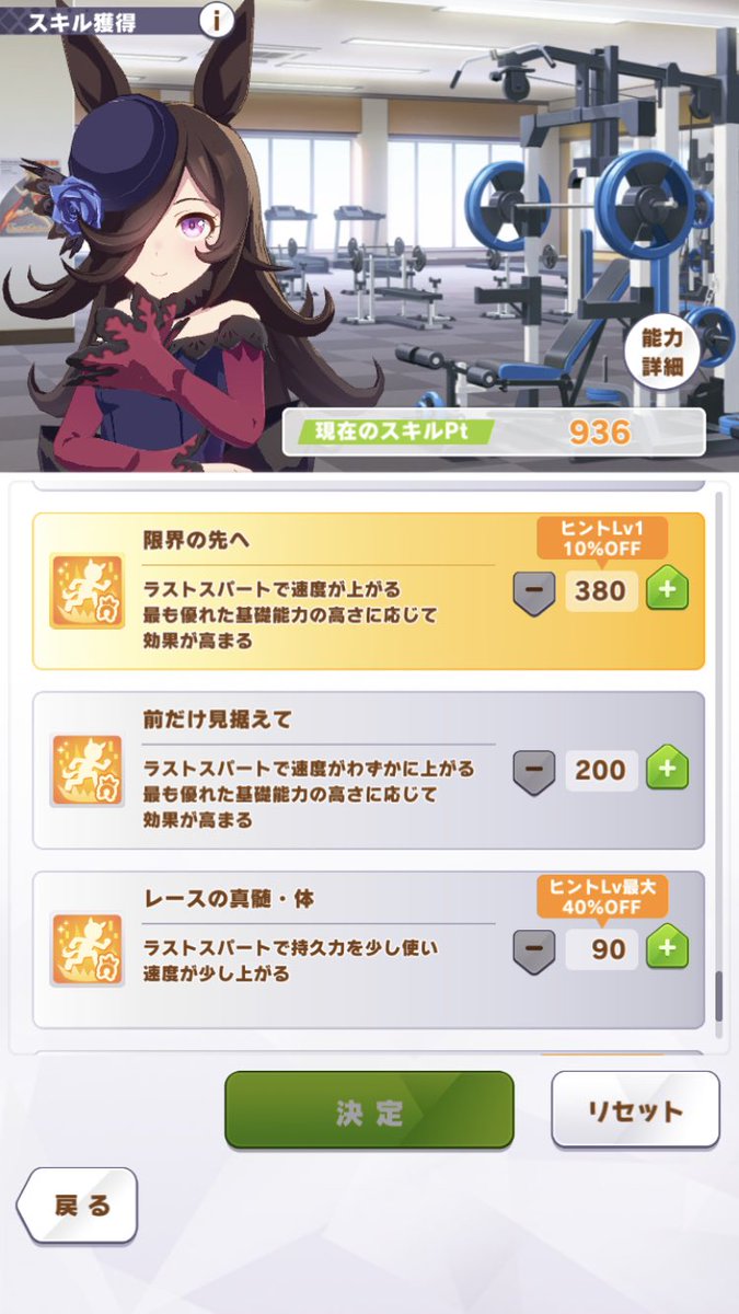 しばらくURA因子周回になりそうURA因子周回は悪くなさそうなんだけど脚質や距離に特化した因子を作りたい場合にスキルを揃えられなさそう。レースの真髄を盗むくらいかなレースの真髄・心って化け物スキルじゃないか!?