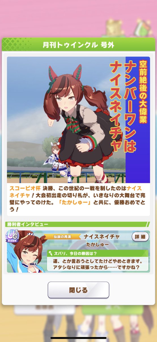 拾い画だけど予選に一度も出走せず、決勝で優勝すると特別な号外記事になるんだって初めて知った。