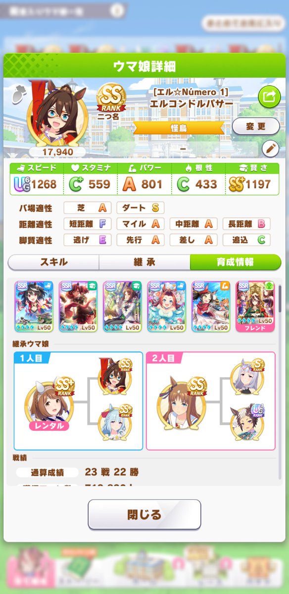 レースの出走数、今は色々と試している最中ですね!レースにきちんと勝てるぐらいのステータスを保ちながら出走数をどのくらいにするか…とりあえず出れるG1には全部出たいと思ってますが