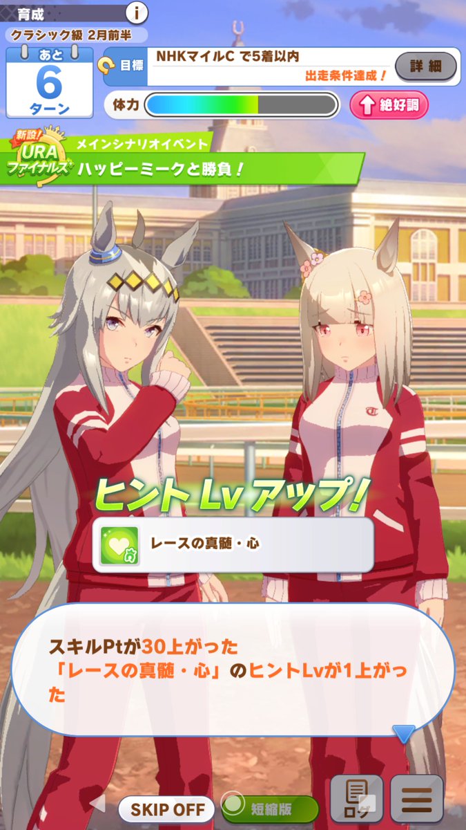 今日の遂に×評価の体力勝負が上手くいきましたが、ミークちゃんとの勝負イベント未完走という結果に。