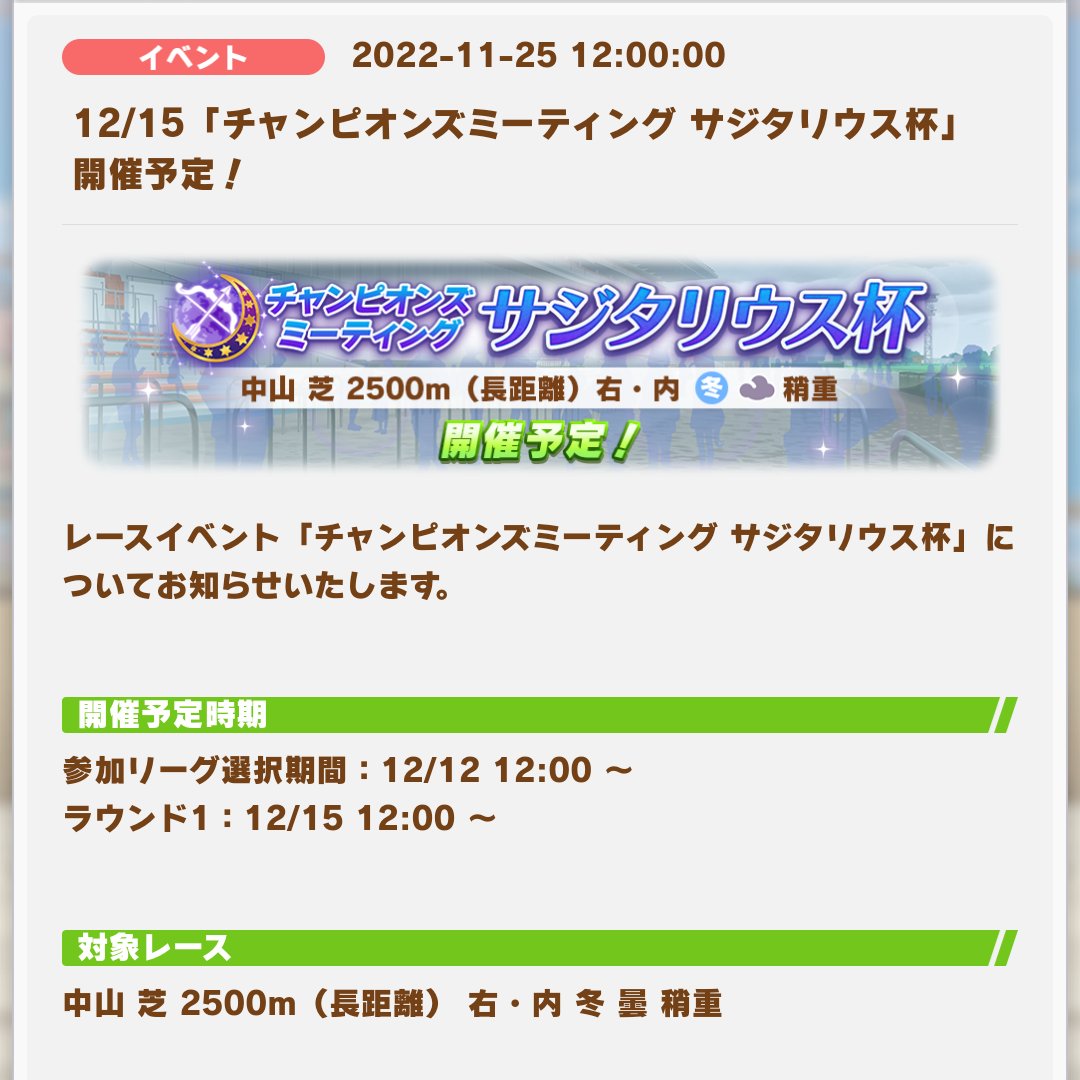 パーマーチョコボンはキタサンと新衣装ウンスの複合を二重掛けした方が計算上は強い557: 名無しのトレーナー 2022/11/25(金) 12:22:12.63 ID:cqN4IubfM春天の頃は逃げは長距離きついって言ってくる謎の層がいたけど流石にもうバレてるな