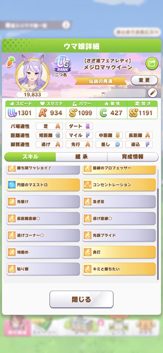 地固め、長距離が継承してくれん…特に地固めが厳しい。先手必勝でブルボン編成だと火力不足でステ盛れんし、スタミナ因子でクリーク外すか?じゃじゃ馬あるから無理にマエストロとる必要ないんよなー🤔