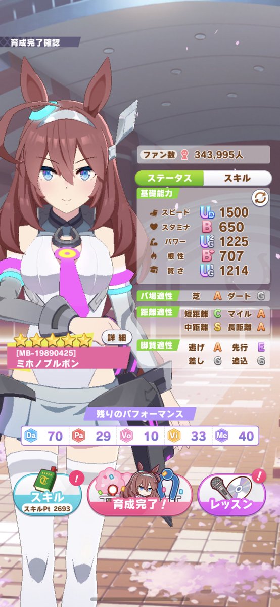 序盤、中盤付けるのも考えます。@Fubutia_ スタミナ700は盛りたい…でもそうなると多分スピード1400くらいになりそうだからスキルモリモリにしなきゃな…
