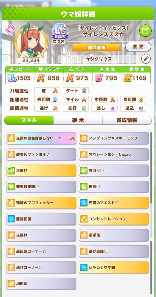 対大逃げ時のスタミナ対策でスズカに金2白2回復+非根幹積んでみたけどこれでも歩いちゃったので、本番では大逃げと当たらない事を祈るしかない😇pic.twitter.com/O8AWffG2Qk kパーマーやスズカが普通に逃げ切ってるの見かけるし、大逃げエースも全然アリなんだよな。後方脚質対策にもなるし大逃げの対策ってどうするんじゃろ。大逃げかぶせるしかないんか?今回ルムマで逃げはこびってるけど、大逃げパマが強くてほぼ逃げが機能してないから対策しないとダメかー?
