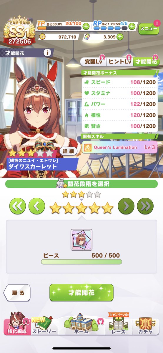 チョコボン星5に出来るけどチャンミ考えないんなら他のウマ娘星4を2人作った方が良さそうだし悩むとこではある。配布スペは星4まで女神像あと6足りない。チャンミまでに特別移籍来たらワンチャン。 pic.twitter.com/ZbiAQu82wX「ウマ娘」で10連ガチャをしたら、「ダイワスカーレット(緋色のニュイ・エトワレ)」が2つ出るという奇跡が起きた事により、2回目の「才能開花」をする事が出来ました。