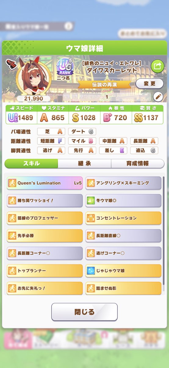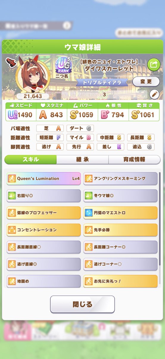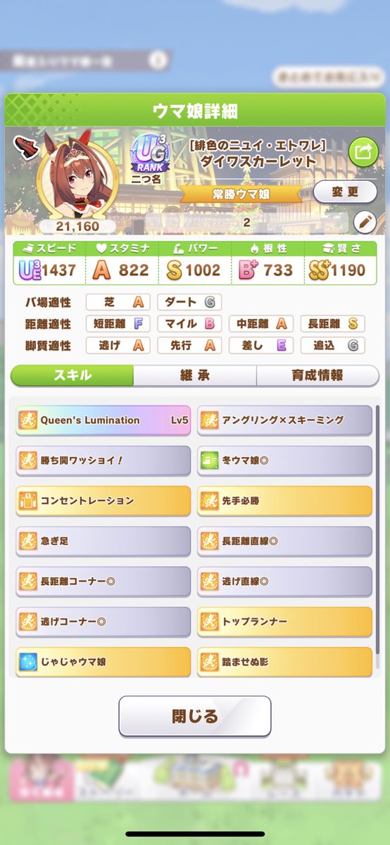 新衣装ダイワスカーレットの育成