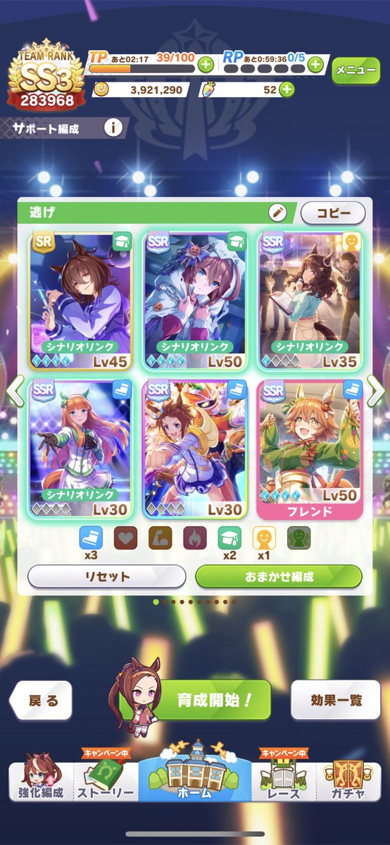 逃げでプランX使えるのか知らないけどスキル良い感じに積めたもののシニア後半全然練習光らなくて死んだなあ