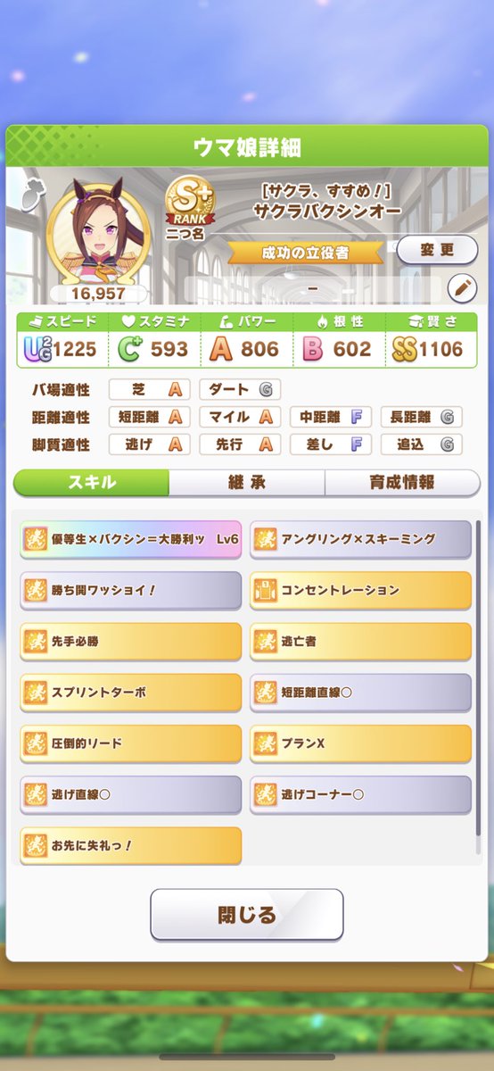 ただこれでも普通にルムマ勝ててるからとりあえず他の先に育成しようかなって……(たわけ固有継承次いつできるかわがんねーし