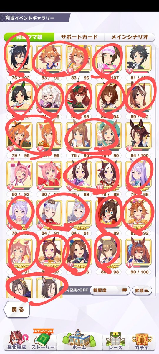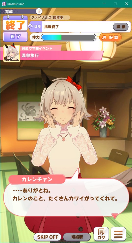 私はマーちゃんの温泉旅行券を引けました!もう少し体調が改善したら育成をもっとやって温泉旅行券を狙いたいですね