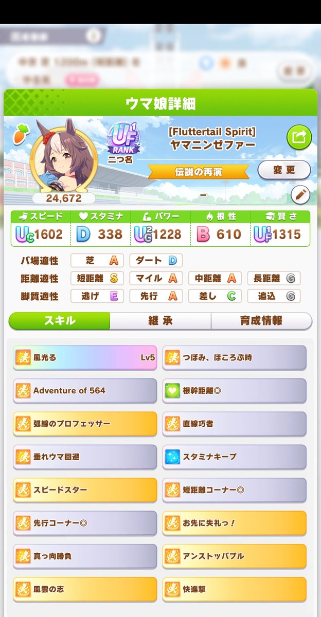 固有とぐるマミの発動率は4割くらいで新タイキの固有が発動率低くていらんかったわ