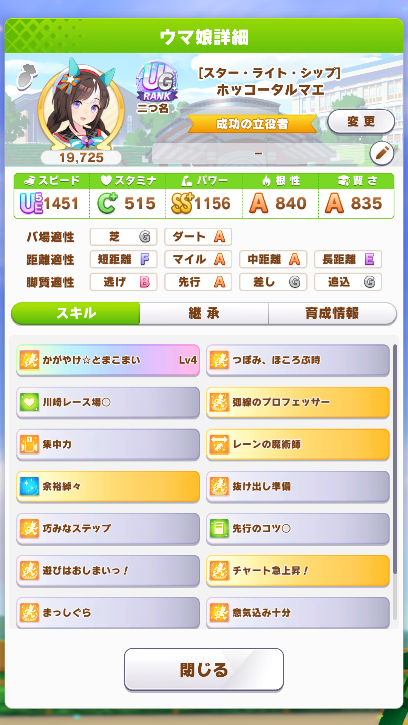 スタ補正あるから合宿だけでも間に合うと思う名無しのトレーナーデイリーレジェンドとかやるとしたらバランスよくじゃなく特化を距離別で作ればいいよ