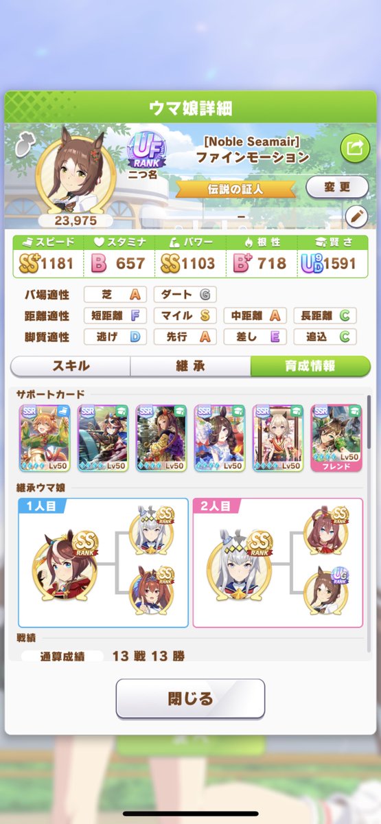 何も考えたくない周回においては大切やな338: 名無しのトレーナー 23/01/21(土) 12:42:44 ID:8M.mk.L45アオハル因果は皐月負けたらもうリセットしたくなる335: 名無しのトレーナー 23/01/21(土) 12:41:57 ID:qm.pa.L18URAも因子追加された時めっちゃ楽だったな……1周20分とか天国過ぎた307: 名無しのトレーナー 23/01/21(土) 12:35:19 ID:8M.mk.L45祖父母作るのにはちょうどいいアオハル