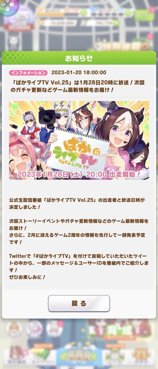 今月のぱかライブTVで2周年とか新シナリオの情報出たりするかな?
