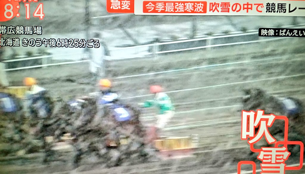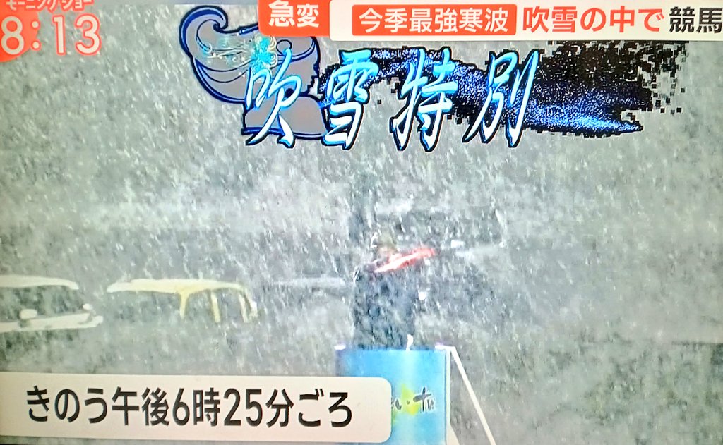 今更ながら、高知競馬の6レース以降が降雪のために競争取りやめになっていたってことがネットを見て知った。関東で雪が降るってのならまだわかるけど、南国高知だよ。まじでこれはなめちゃいけない寒波だったようだ。高知競馬場は降雪でレース中止だって(゚д゚)! スターファイターのレースはまだわからないみたいだけど、大寒波恐るべし😱高知競馬やってるからファイナル予想しようと思ったら大雪状態でレース取りやめ協議中らしい。高知は関東より南だけど南岸低気圧に掛かりやすいから今回みたいな寒波になれば関東より降雪のリスクはあるんやね最強寒波でまたもや競馬を取り上げるモーニングショー笑