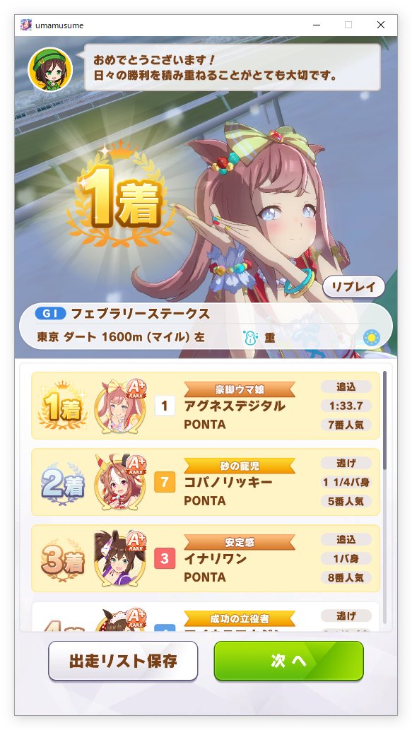 後ろ脚質3人は全然安定しないのであまり強くない逃げリッキー入れたほうがまだ安定しますね